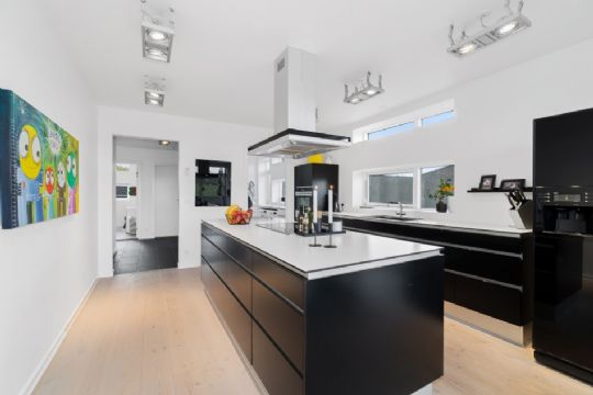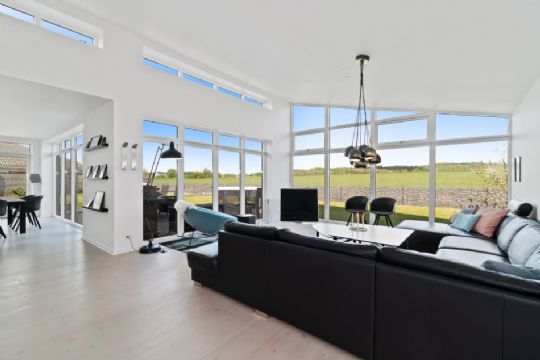 Stuen er med åbent rumforløb til køkken-alrummet. De mange kvadratmeter kan snildt rumme 30 mennesker til festlige stunder.