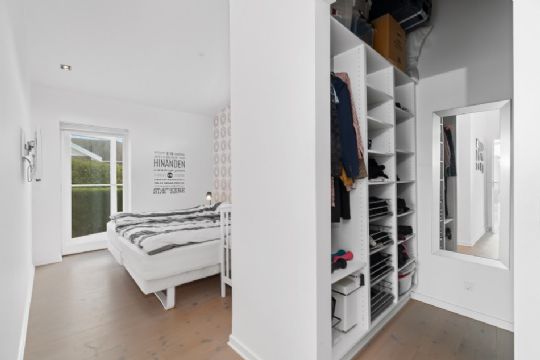 Forældrene kan få deres egen afdeling med et soveværelse, et walk-in-closet og badeværelse. I den modsatte ende af boligen kan børnene indrette sig i de to tilstødende værelser, og her er endnu et moderne badeværelse samt adgang til et bryggers. Slutteligt venter et fjerde værelse.