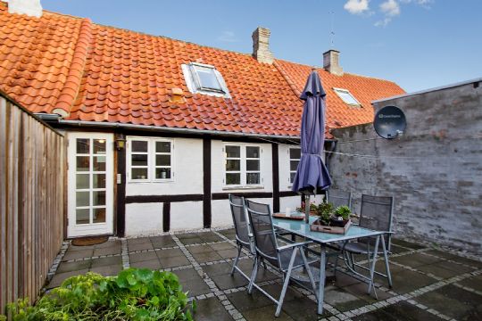 Huset har flisebelagt gårdhave og er beliggende i den gamle bydel, tæt til Laksetorvet, Nørrekås Lystbådehavn, Kystvejen samt Store Torv med gode indkøbsmuligheder.