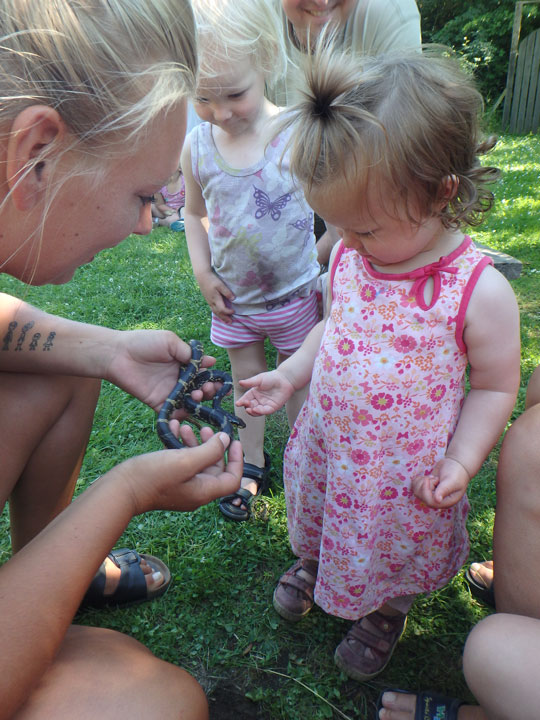 NEXØ - Børn og personale i Naturbørnehaven Lillemyr på Balka havde fredag besøg af både mus og slanger.
