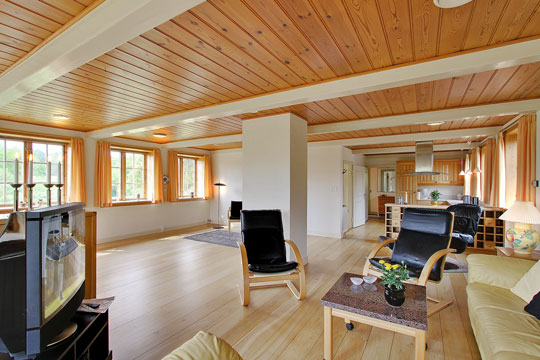 Beboelsen indeholder flot hall, gæstetoilet med brus, køkken i åbent plan til stor, lys stue med formidabel udsigt over landskabet, spisestue med udgang til sydvendt terrasse, kontor/værelse, soveværelse med adgang til lækkert badeværelse med spabad og brus, stort grovkøkken/bryggers.