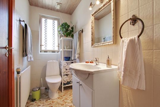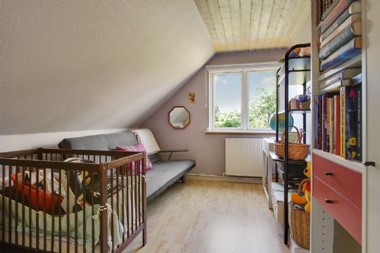 På 1. sal er badeværelse med badekar, to store værelser og stort værelse, der kan deles til to værelser samt opbevaringsrum.