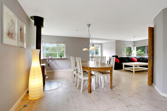 Ejendommen indeholder hverdagsentre, fyrrum med pillefyr og adgang fra carporten, værelse i tilbygningen, mellemgang, hovedentre, badeværelse, spisekøkken og opholdsstue med gulvvarme og brændeovn samt opgang til 1. sal.