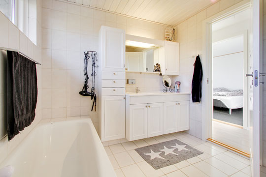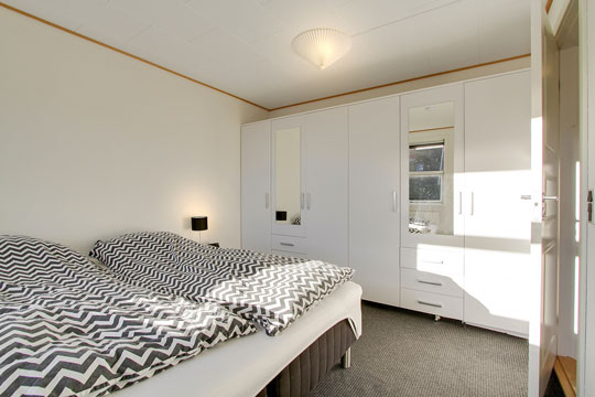 Boligen har en sydvendt soveafdeling med tre værelser. Mod nord ligger yderligere to værelser, og der er badeværelse med gulvvarme, og både bruseniche og badekar.