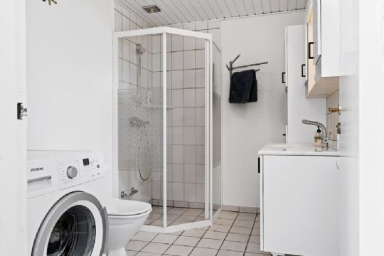 Der er yderligere to rum i kælderen, hvor der desuden er et lille disponibelt rum og et tredje badeværelse.