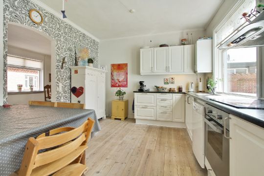 Boligarealet er på 105 kvadratmeter, og huset der fremstår i pæn stand med blandt andet nyrenoveret 1. sal.