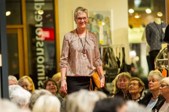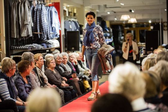 Simon's havde i år fået catwalk´en op på et podie, så der var bedre mulighed for at se tøj og tasker fra modehusets leverandører af tøj til både de yngre og de modne kvinder.