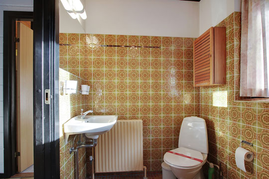 Huset er opført i 1980 og indeholder entre, bryggers med vask og vaskemaskine, badeværelse med bruseniche og kar samt gulvvarme, køkken åbent til spiseafdeling, opholdsstue med pejs, gulvvarme og loft i kip samt med udgang til overdækket terrasse mod syd. Desuden er der soveværelse med skabe og to værelser med skabe.