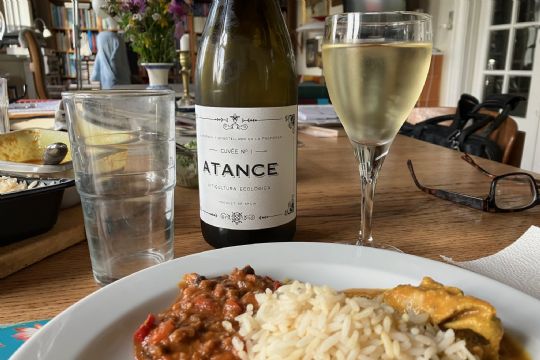 Økologisk Azante fra Valencia gik fint til en lettere lun anretning.Fra en bekendt modtog jeg en anden vin, fra den spanske bodega Mustiguillo, der lokker med betegnelsen Risky Grapes, risikable druer, og på hvis etiket, der står Atance Chardonnay 2021. Også en dejlig frisk sag, der laves af druer, som udvikler sig næsten en kilometer over havets overflade. Sælgeren Supervin synes den er bedre end "Chablis" fra Spanien" og det kan man jo ikke vide, men god var den til den oplyste pris på kr. 99,00.