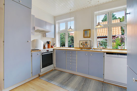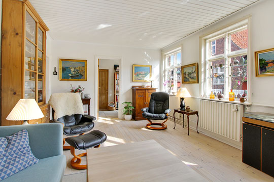 Huset er på 129 kvadratmeter med bl.a. nyere tegltag og anneks.