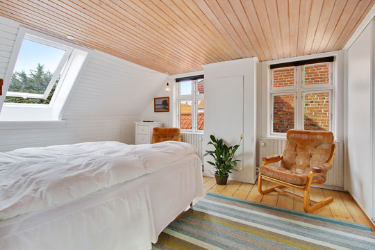 På 1. sal er trapperepos, stort soveværelse og børneværelse samt et lille gæsteværelse samt stort badeværelse.