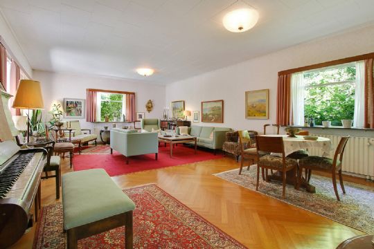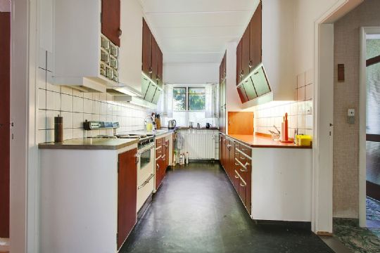 Villaen er ikke blevet moderniseret meget, siden den stod færdig omkring juletid 1958. Men huset er bygget med kvalitetsmaterialer og teaktræ, gotlandsk marmor og sildeparketgulv pryder stadig den rummelige bolig.
