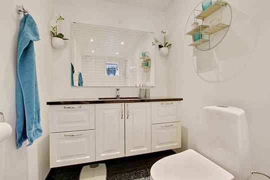 Bryggerset er lokaliseret lige ved køkkenet, og stueplanet huser også to af værelserne samt badeværelset fra 2017 med hjørnespa .