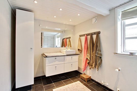 Huset indeholder nyt bryggers med gulvvarme, nyere flisebadeværelse og nyere elementkøkken i åben forbindelse med stue. Fra stuen er der udgang til en ca. 30 kvm stor solrig terrasse.