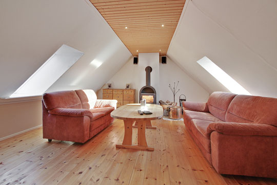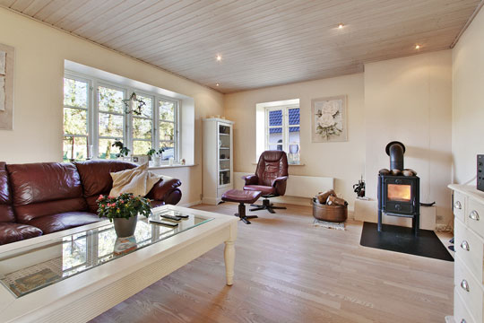 1. salen indeholder repos, stue med brændeovn, soveværelse og værelse.