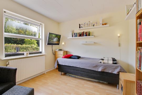 Der er fire gode, store soveværelser i huset, og med to badeværelser og gæstetoilet.