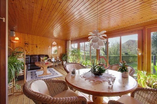 Ejendommen, der fremstår velholdt, indeholder entré med trappe til 1. sal samt nedgang til kælderen, badeværelse, spisekøkken, stue med adgang til stor isoleret havestue med glasparti mod haven.