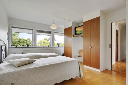 Villaen har fire værelser og to badeværelser og fra det største er der adgang direkte ud til haven.