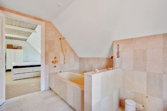 Baghuset er helt nyrenoveret og giver dig først og fremmest gildesalen, som er et stort, lyst rum med gulvvarme og plads til større selskaber. Dette støder op til et flot køkken-alrum, og endelig er der både bade- og toiletforhold i dette plan. Baghusets førstesal byder på en flot stue med brændeovn og integreret køkken, og hertil kommer et soveværelse og et badeværelse. Fra køkkenet er der direkte adgang til en stor altan.
