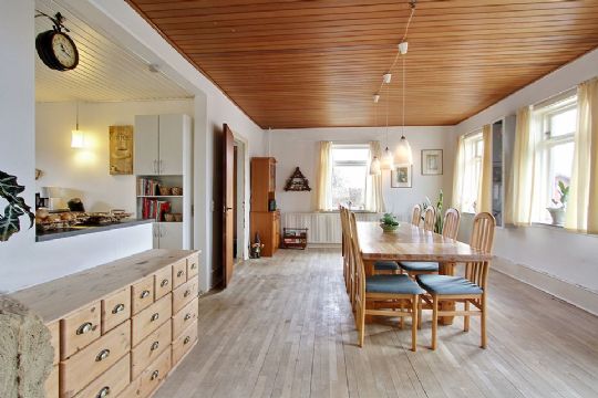Ejendommen indeholder entre med trappe til 1. sal, to stuer med trægulv samt brændeovn og udgang til træterrasse, hverdagsentre, vaskerum/spisekammer, køkken, badeværelse med badekar og soveværelse med trægulv.