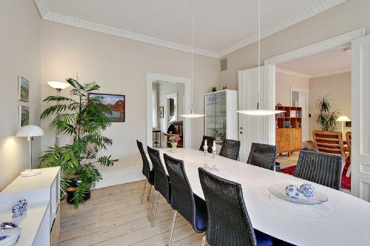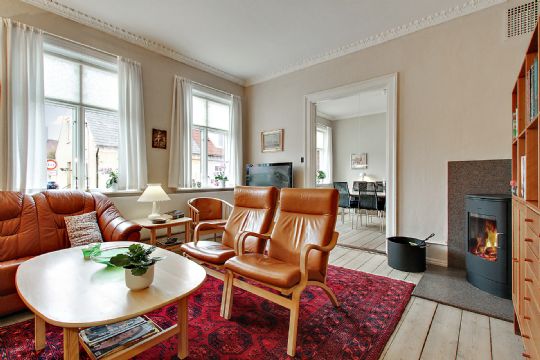 Boligarealet er på 152 kvadratmeter i to plan, og det ligger i gåafstand til Store Torv og Nørrekås strand og bådehavn.