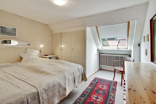 Første sal byder på tre soveværelser og et badeværelse med bruseniche. Dertil kommer et loft med plads til at indrette to soveværelser mere.
