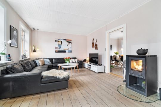 Huset, der har et boligareal på 140 kvadratmeter, kombinerer rummelighed og charme med moderne komfort.