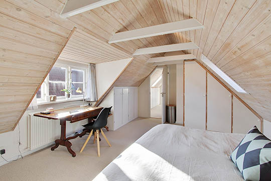 På første sal er repos med adgang til to rummelige værelser og et badeværelse.
