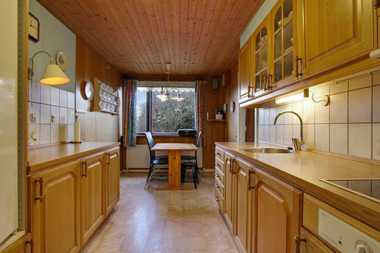 Haven grænser op til en lille skov, og i boligområdet er der ikke bopælspligten, så ejendommen kan benyttes som fritidshus.