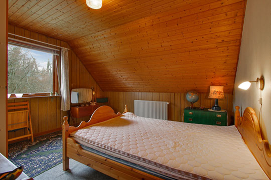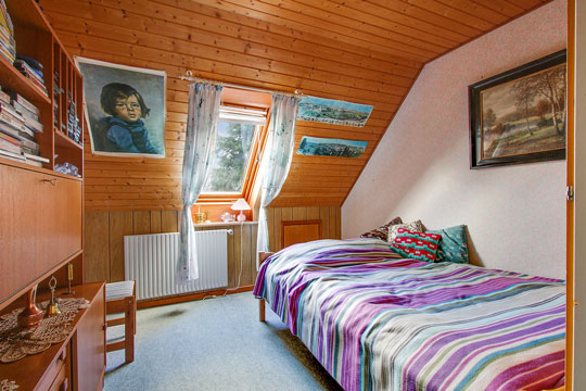 På 1. sal er stort værelse med udsigt over Tejn til havet, to store værelser og badeværelse.