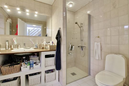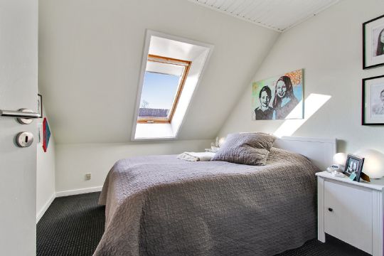 På 1. sal er soveværelse, stort kvistværelse og rummeligt værelse med mulighed for opdeling.