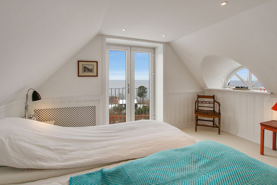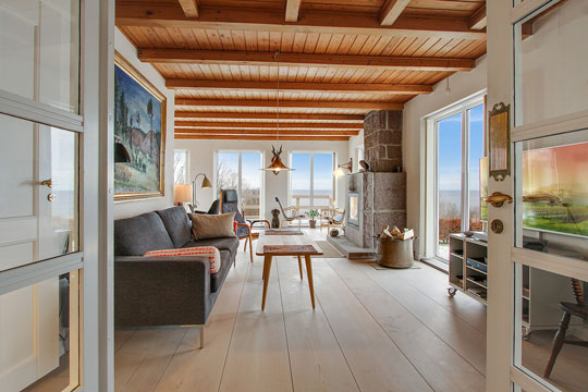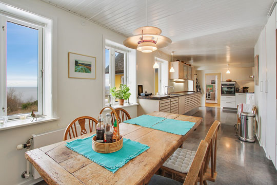 Stuen er indrettet med store vinduespartier for at lade den formidable udsigt rigtigt komme til sin ret. Fra de store vinduespartier og terrassen udenfor er der et fantastisk vue over Østersøen og helt til de svenske rapsmarker og vindmøller.