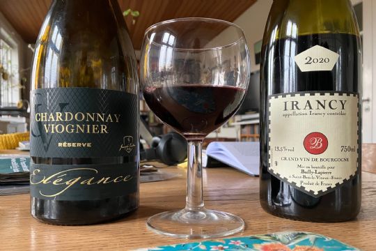 Vi købte et par flasker, se foto, og dem var vi godt tilfredse med. En hvidvin af de to druer Viognier og Chardonnay samt en Pinot Noir, begge i den lidt bedre ende.