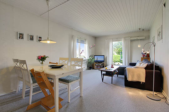 BOLIG – Ugens Hus hos DanBolig er et velindrettet svensk træhus af bungalow-typen i Byledsgade i Rønne med godt indeklima.