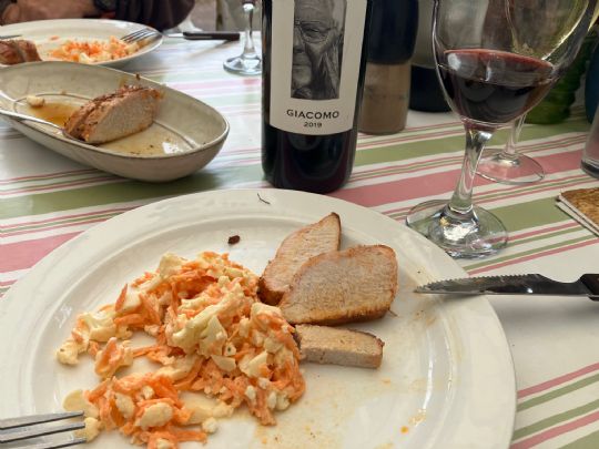 Prøvede også italiensk MerlotEn anden aften gensmagte vi i samme prisklasse den sjældne vin Giacomo (også 2019, men 15,5%), der er opkaldt efter Giacomo Tachis, som er blevet kaldt "supertoscanernes far", og som produceres hos hans datter, Ilaria Tachis. Vinen er en kraftig, men frugtig sag (Amfora), der anbefales til alle kød- og gryderetter.