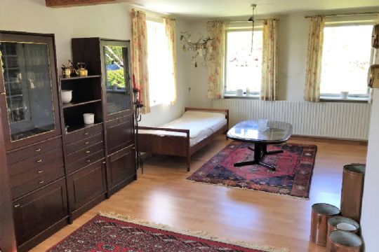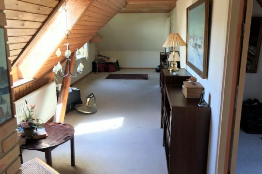 Der er desuden en sidebygning med værksted, fyrrum med pillefyr og udestue eller hobbyrum.