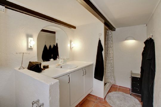 I kælderen er der forrum/vaskerum med fjernvarmeunit og installation til vaskemaskine og badeværelse med håndvaskarrangement, toilet og bruseniche.
