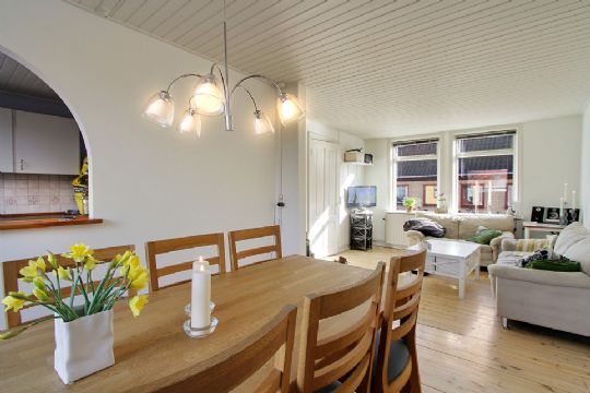 Ugens Hus hos DanBolig er et velholdt sammenbygget 1½-planshus på 117 kvadratmeter i Stengade centralt i Rønne.