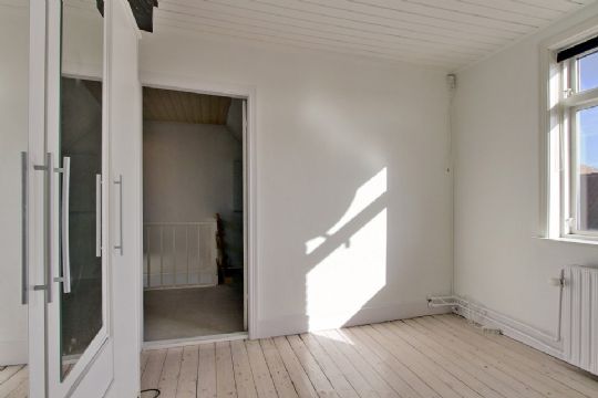 På 1. sal er repos med kvist, soveværelse og værelse med skabe.