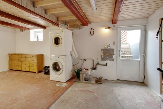 Kælderen har stort forrum/bryggers med klinkegulv samt to disponible rum.