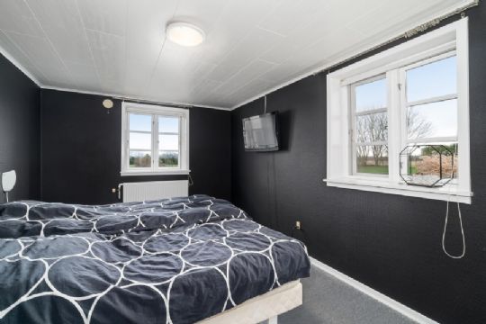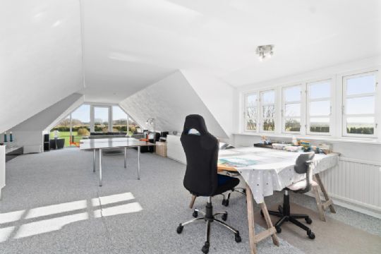 På førstesalen er endnu et værelse samt endnu en stue - her med anseelige glaspartier.