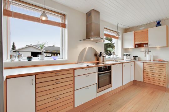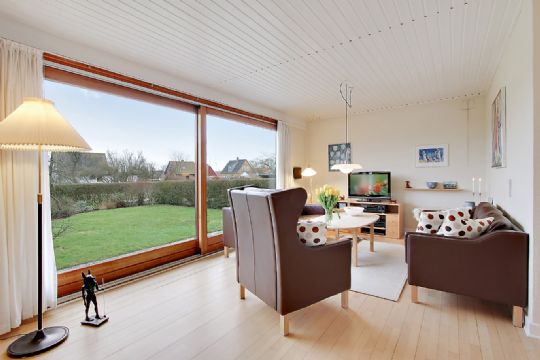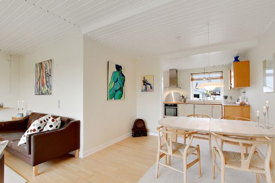 Der er badeværelse fra 2009, køkken i delvis åben forbindelse mod stuen, vinkelstue med parketgulv samt glasparti med skydedør til terrassen og haven.