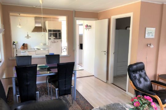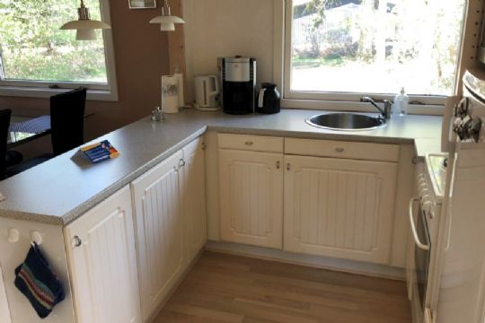 Huset, der er godt udlejet via DanCenter, indeholder entre, badeværelse med bruseniche og gulvvarme, køkken med god skabsplads, el-komfur, køle-/fryseskab og emhætte samt to soveværelser med skabe og rummelig opholdsstue.
