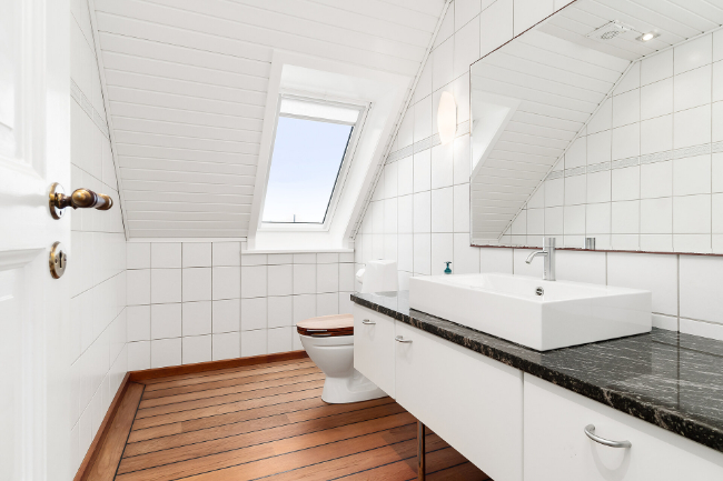 Franske altanerPå første sal er endnu et badeværelse, to værelser med franske altaner og en stue med udgang til en anseelig, overdækket terrasse.