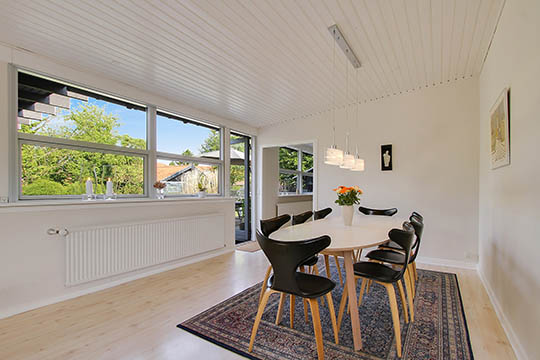 Huset er på 191 kvadratmeter og har inden for de seneste fem år fået skiftet en del vinduer og døre og lagt nyt tag på sidebygningen.