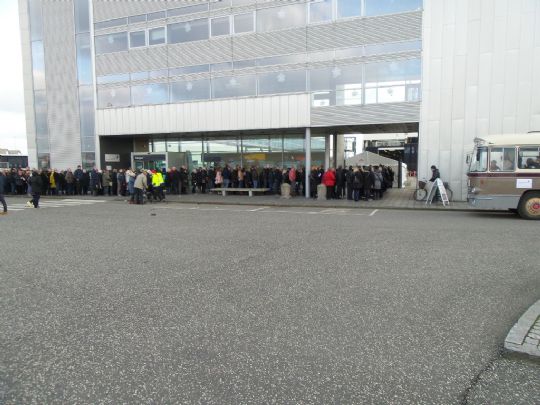 Når køen ved Juleskibet M/F "Povl Anker" i Køge Havn bliver for lang, så tager mange en rundtur med bussen for at få varmen, inden de stiller op i køen igen.