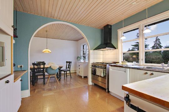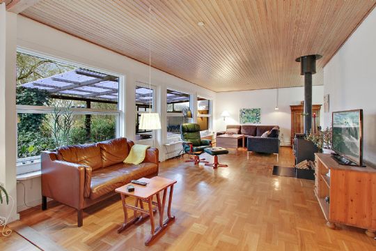 Ejendommen, der fremstår i velholdt stand, er indrettet med entré med klinkegulv samt gulvvarme, køkken i åben forbindelse til stue, vinkelstue med brændeovn samt udgang til overdækket terrasse, badeværelse, soveværelse og værelse.