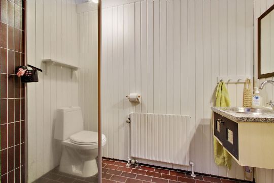 Huset har kælder på i alt 112 kvadratmeter og 42 kvm beboelse, som indeholder værelse med direkte adgang til haven, værelse, badeværelse, hobbyværksted, viktualierum og bryggers.