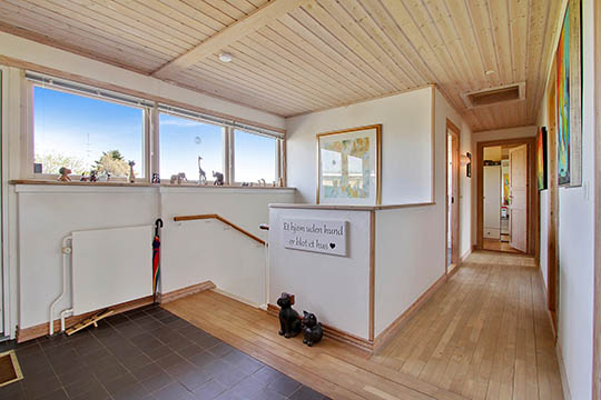 Der er en rummelig entré med klinkegulv og den munder ud i en fordelingsgang, hvorfra der er adgang til de fire værelser og et moderniseret badeværelse med bornholmsk granit på gulvene.