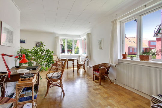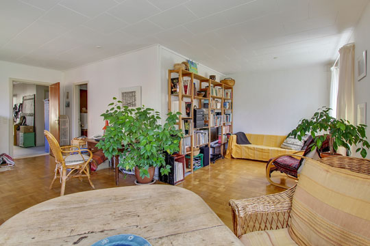 Ejendommen indeholder entre, vinkelstue med parketgulv, oprindeligt snedkerkøkken med lille spiseplads og serveringslem til stuen, soveværelse, lille værelse og oprindeligt flisebadeværelse med badekar og gulvvarme.